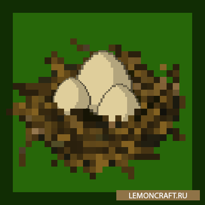 Данный мод добавит в игру птичьи гнезда, которые будут падать при разрушении блоков листвы. Из них вы сможете с определенной вероятностью достать различные предметы: начиная от яиц и заканчивая алмазами.